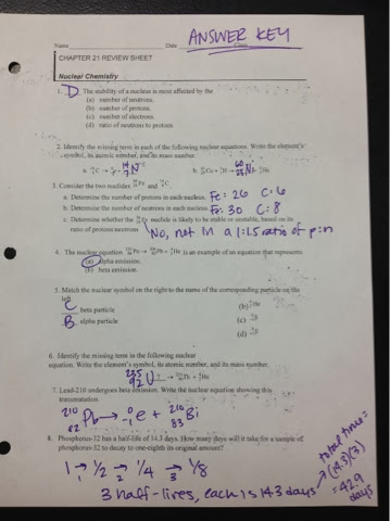Answer key for CP1 nuclear review